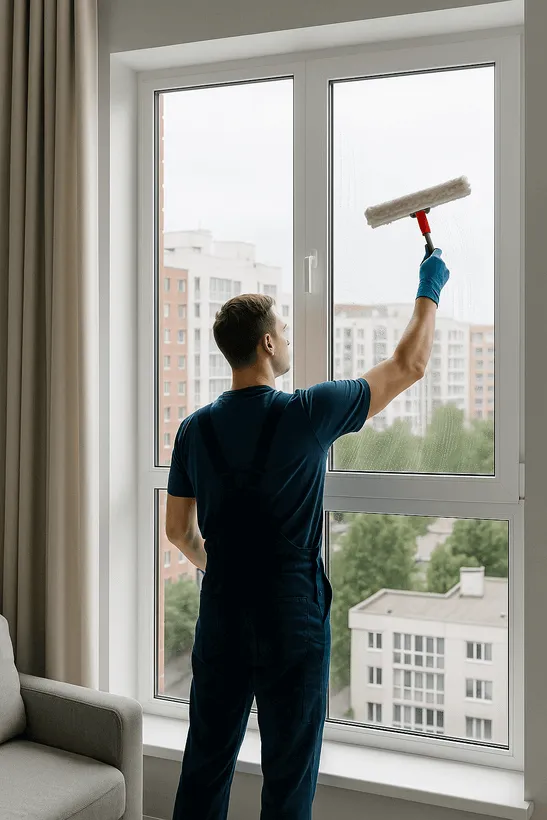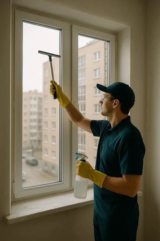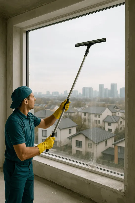 Стоимость фиксируется до начала работ. Клининг окон после ремонта квартиры 70 м² — 18 900 ₸ без скрытых платежей.