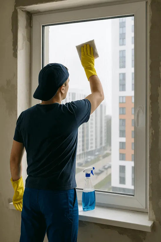 Мы профессионально моем окна, витражи и остекление после строительных и ремонтных работ. Удаляем строительные загрязнения, пыль, клей и плёнку, возвращая окнам прозрачность и блеск.