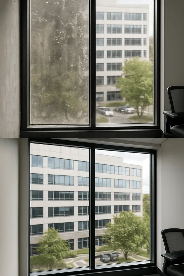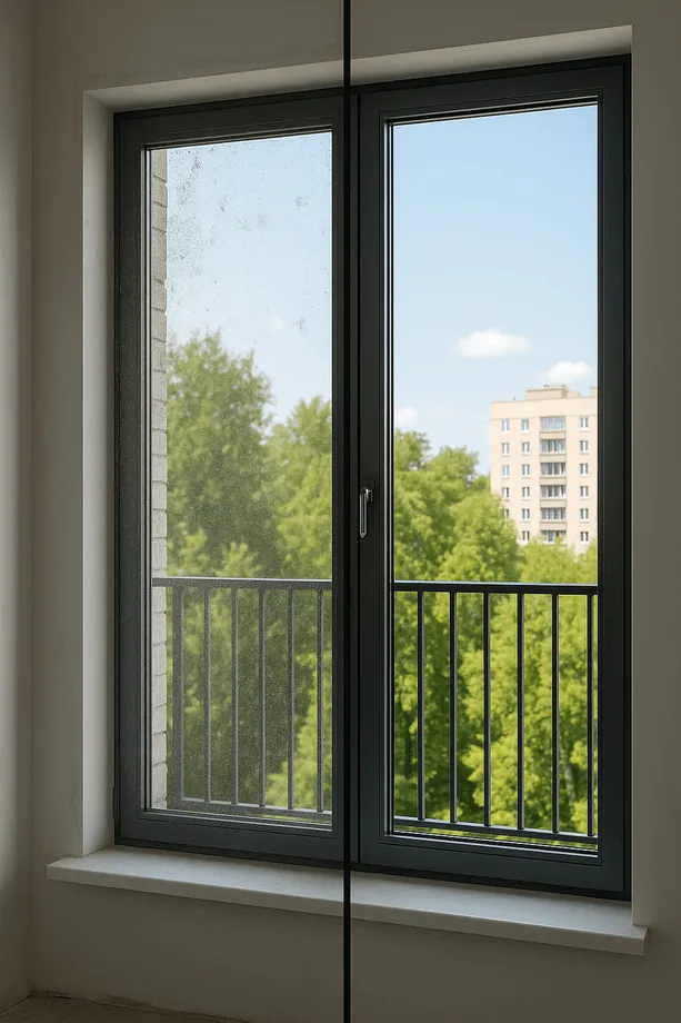 Позже появились «народные» рецепты с нашатырем, уксусом и бытовой химией. Эффект был лучше, но агрессивные составы портили покрытие энергосберегающих стекол, алюминиевую фурнитуру и пластиковый профиль. Универсальные клининговые компании тоже не всегда справлялись: без узкой специализации их подходы могли навредить конструкции.