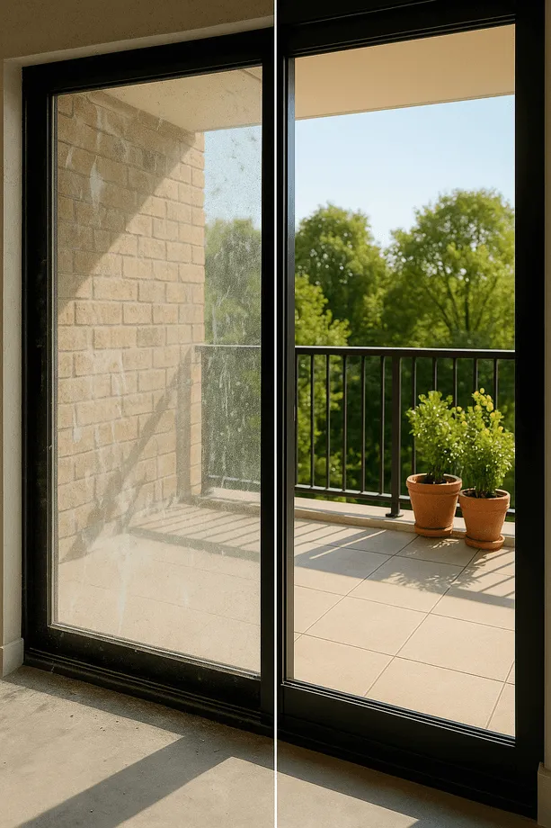 Если начать стирать такую пыль обычной тряпкой, вы буквально втираете абразивные частицы в стеклопакет и пластиковые поверхности. Результат — матовое покрытие и сетка из микроцарапин, особенно заметных при солнечном свете. Такие повреждения не устраняются, их можно только предотвратить.